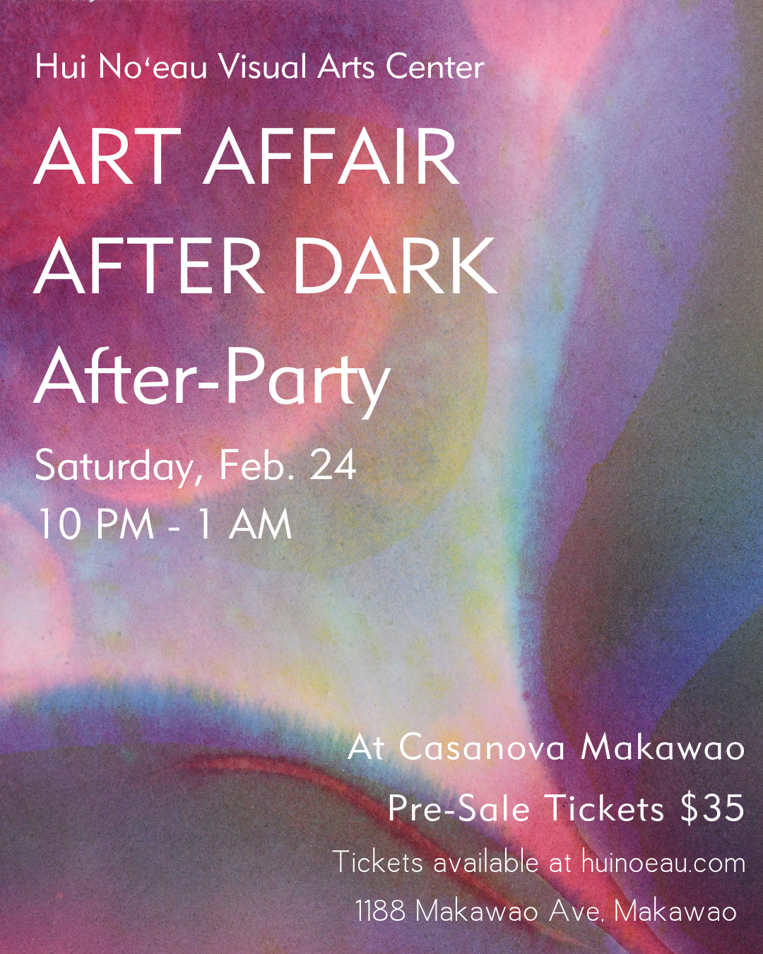 Join us at Casanova’s Restaurant in Makawao for Hui No‘eau's 2024 Art Affair After Dark After-Party! Get ready for a night of music, dancing, and FUN–all while supporting the visual arts. Dance the night away to music by DJ TRVR and DJ Del Sol. It’s sure to be a night out you won’t want to miss! This is a 21+ event.